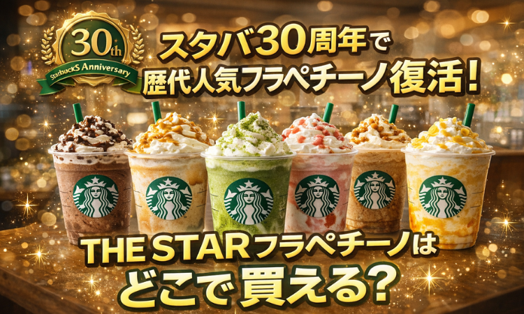 スタバ好きの皆様に朗報です!2026年4月8日からスターバックスの日本上陸30周年を記念して歴代人気フラペチーノの復刻が決定!この記事では、スターバックス日本上陸30周年の節目に登場した「THE STAR フラペチーノ」がどんな企画なのかを...