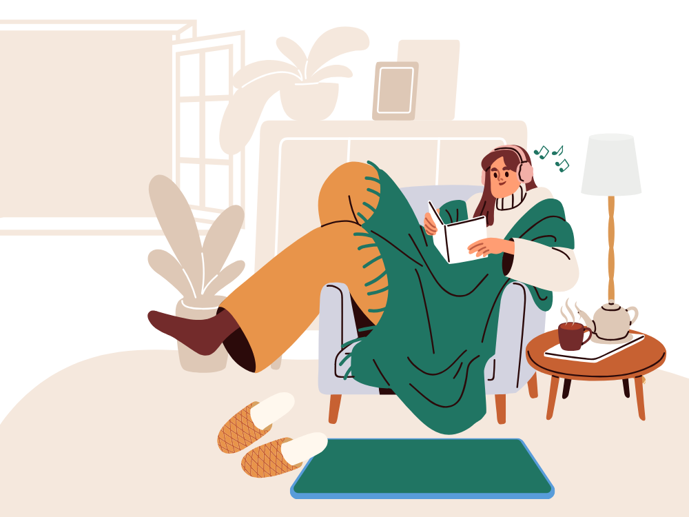 - 低刺激なルームランプや間接照明、香りディフューザーなどを使って空間を整える
