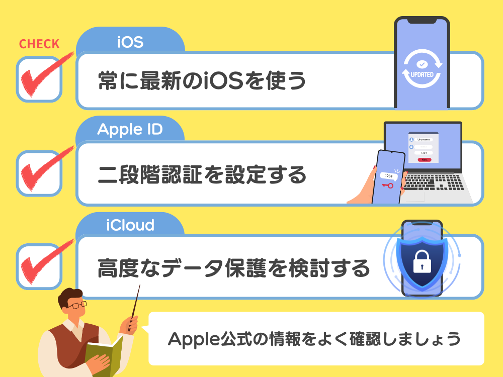 個人情報や仕事のデータを端末で扱う以上、iOSのセキュリティ対策は必須です。