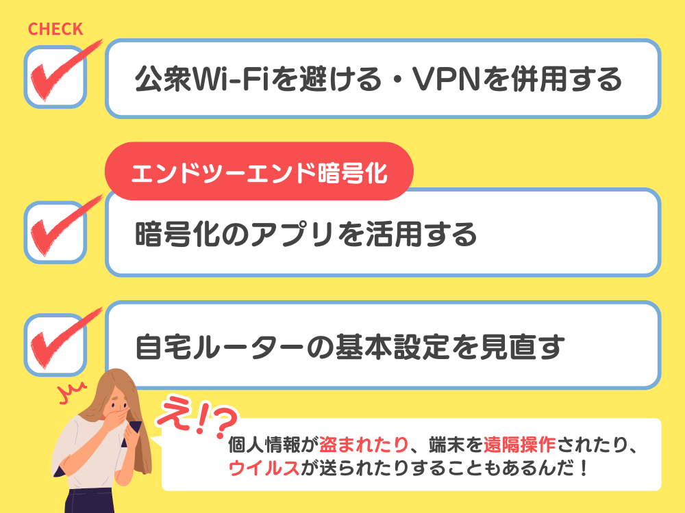 どうしても使用する場合にはVPNで通信を暗号化しましょう。
