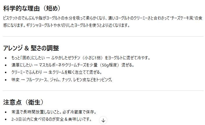 → サブレが水分を吸って、ヨーグルトが引き締まりやすくなる - チーズケーキのような質感になることは「ありえる」