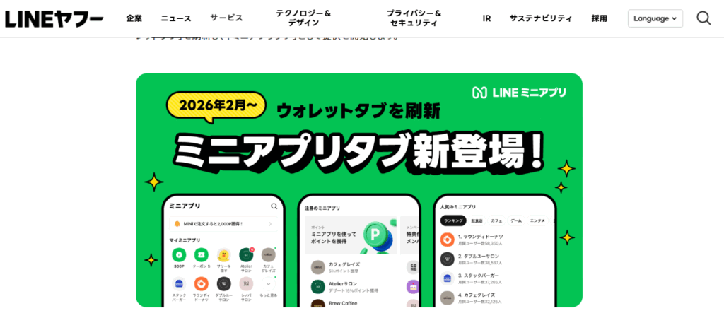 2026年2月より、LINEの「ウォレットタブ」が大きく生まれ変わり、「ミニアプリタブ」 として提供がスタートします!