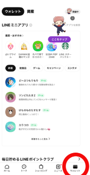 LINEのタブのウォレットの中にあるのがミニアプリになります👇