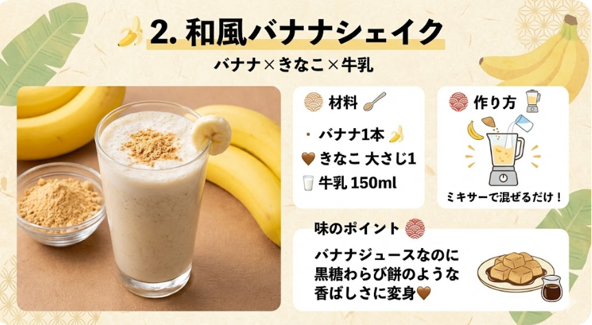 🍌2. バナナ×きなこ×牛乳 → 和風バナナシェイク