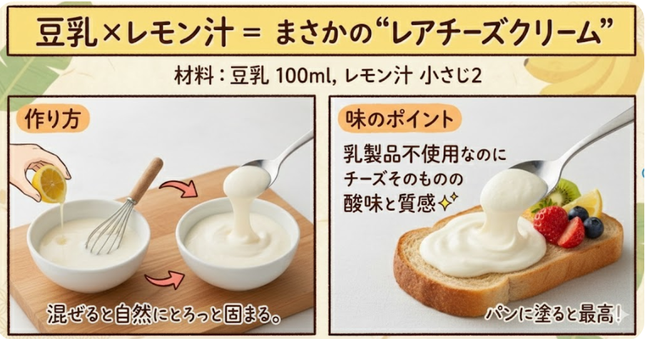 🥛3. 豆乳×レモン汁 → まさかの“レアチーズクリーム”