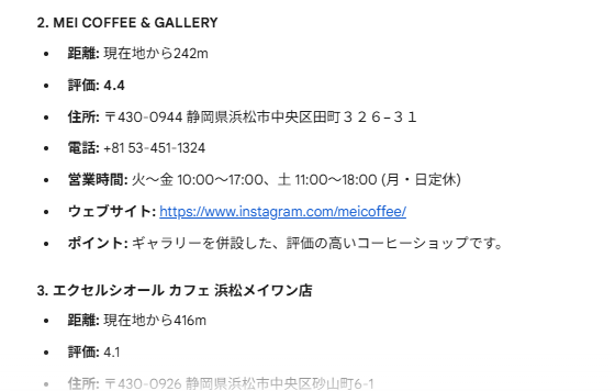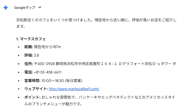 「浜松駅近くのカフェを教えて」