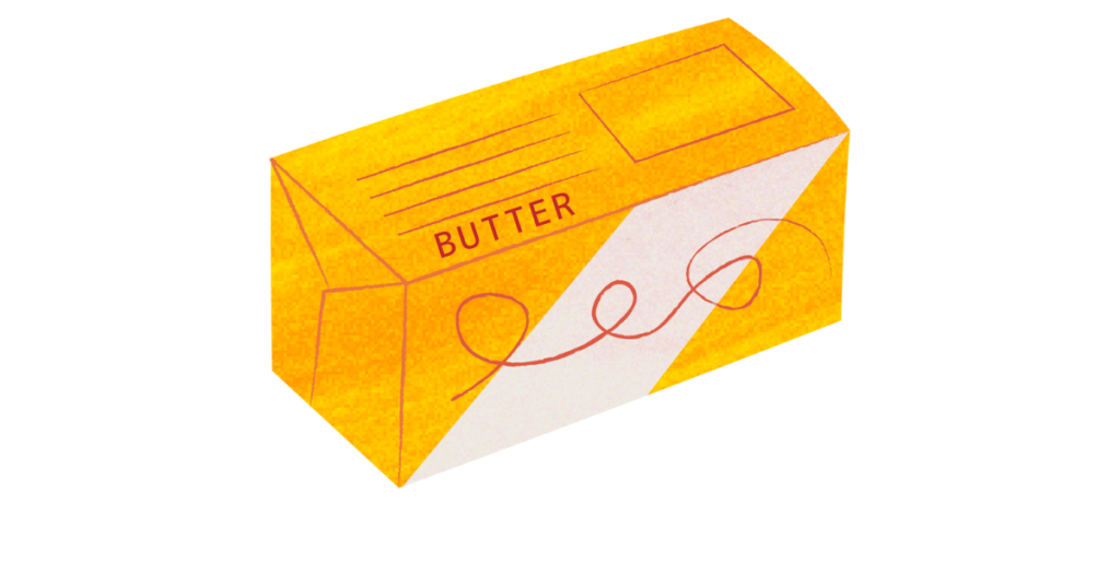 バターは牛乳の脂肪から作られる食品です。コクがあって香りがよく、料理やお菓子づくりに欠かせません。