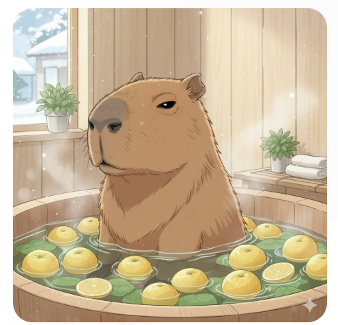 カピバラのようにゆず湯で癒されてみてくださいね😉