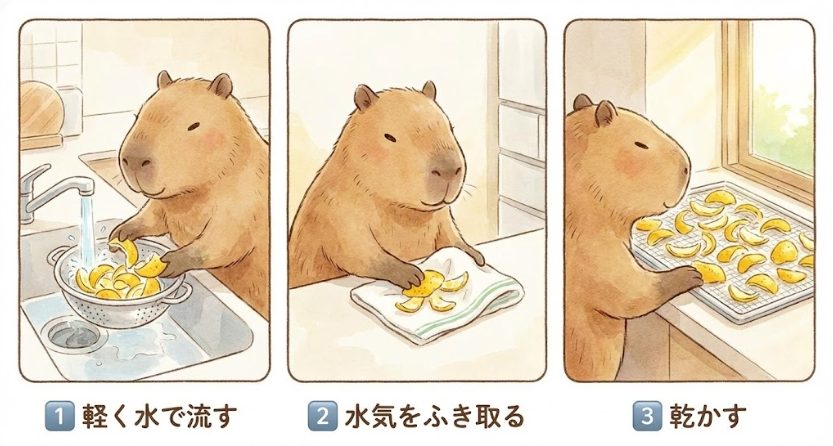 - 柚子の皮を天日干し or レンジで軽く乾燥