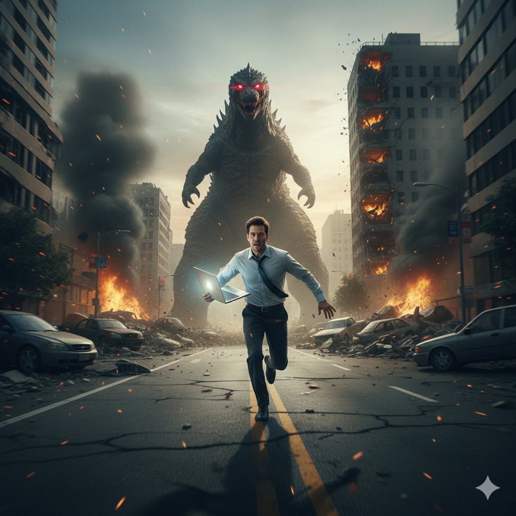 ゴジラより強いのは、社会の通常運転なのかもしれません(ChatGPT)。