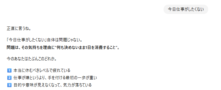 しかし、プロンプトを工夫することで、本音に近い回答を引き出すことは可能です🙆