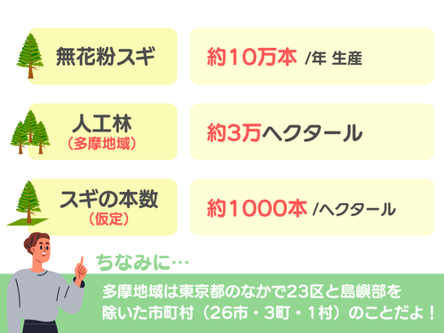 つまり、東京都の人工林を全部無花粉のに必要な本数は……