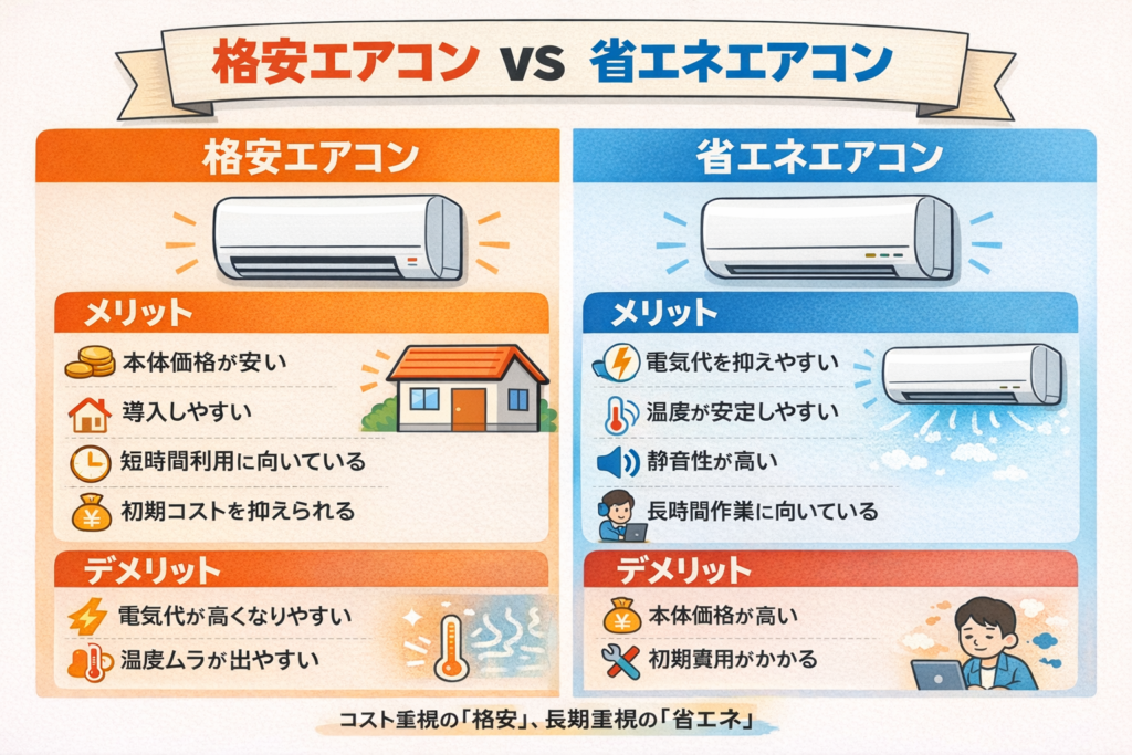 格安エアコン vs 省エネエアコン比較