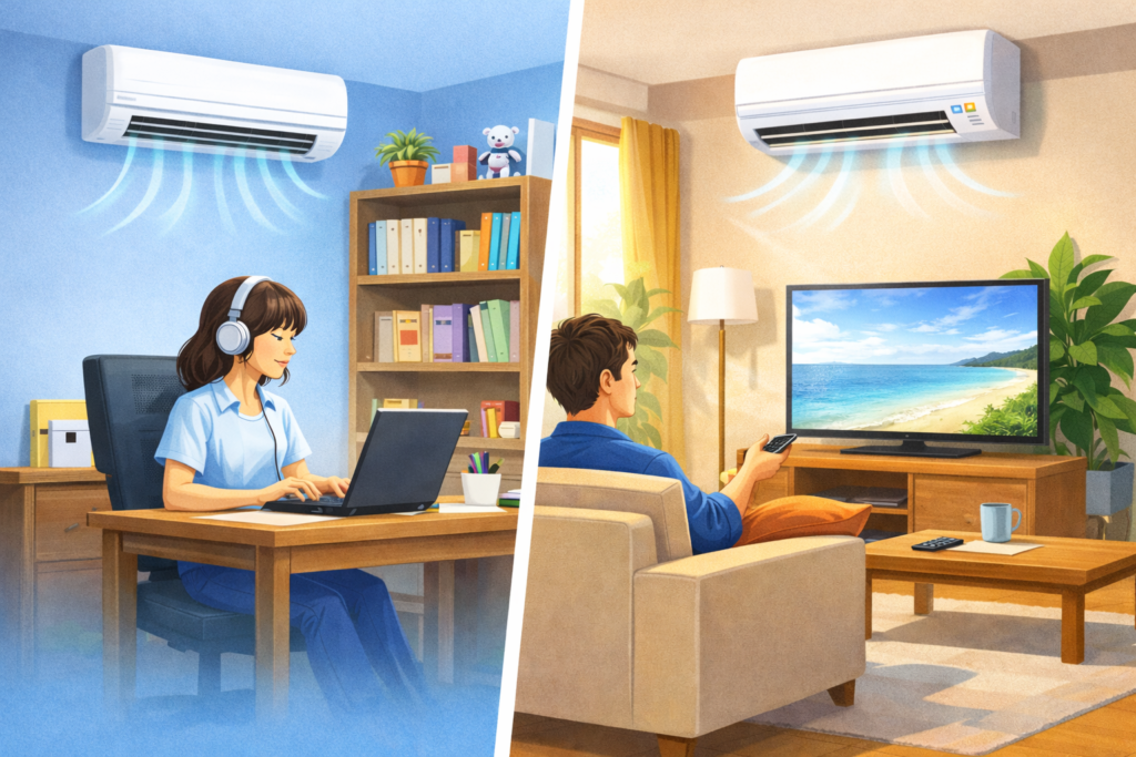 - 長時間×リビング → 省エネ推奨(電気代優先)💕