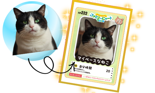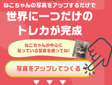 ねこトレカとは、愛猫の写真を使って作れるオリジナルトレーディングカードです。