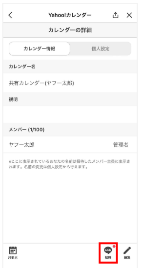 ② 「Y!カレンダー(共有)」を選択