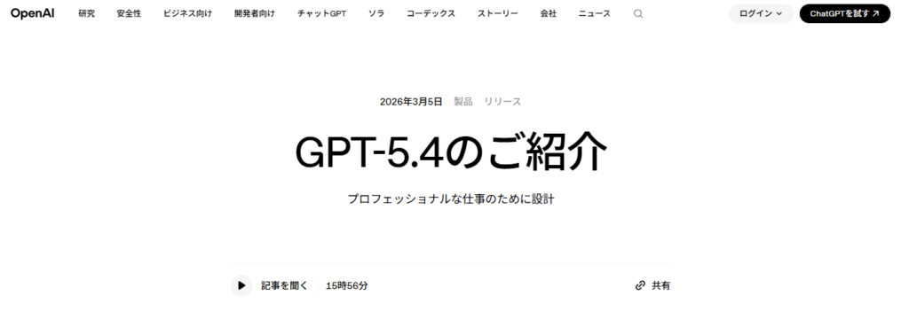 ChatGPT5.4は、ChatGPTの新しいバージョンです。