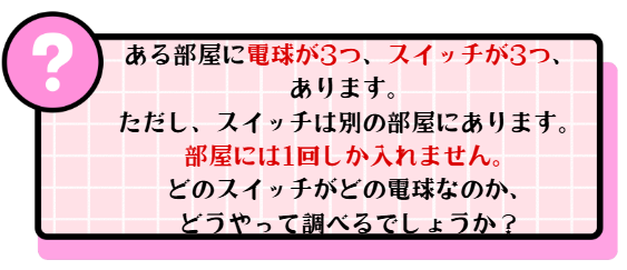 「1つのスイッチをしばらくつけてから消し、もう1つをつける。