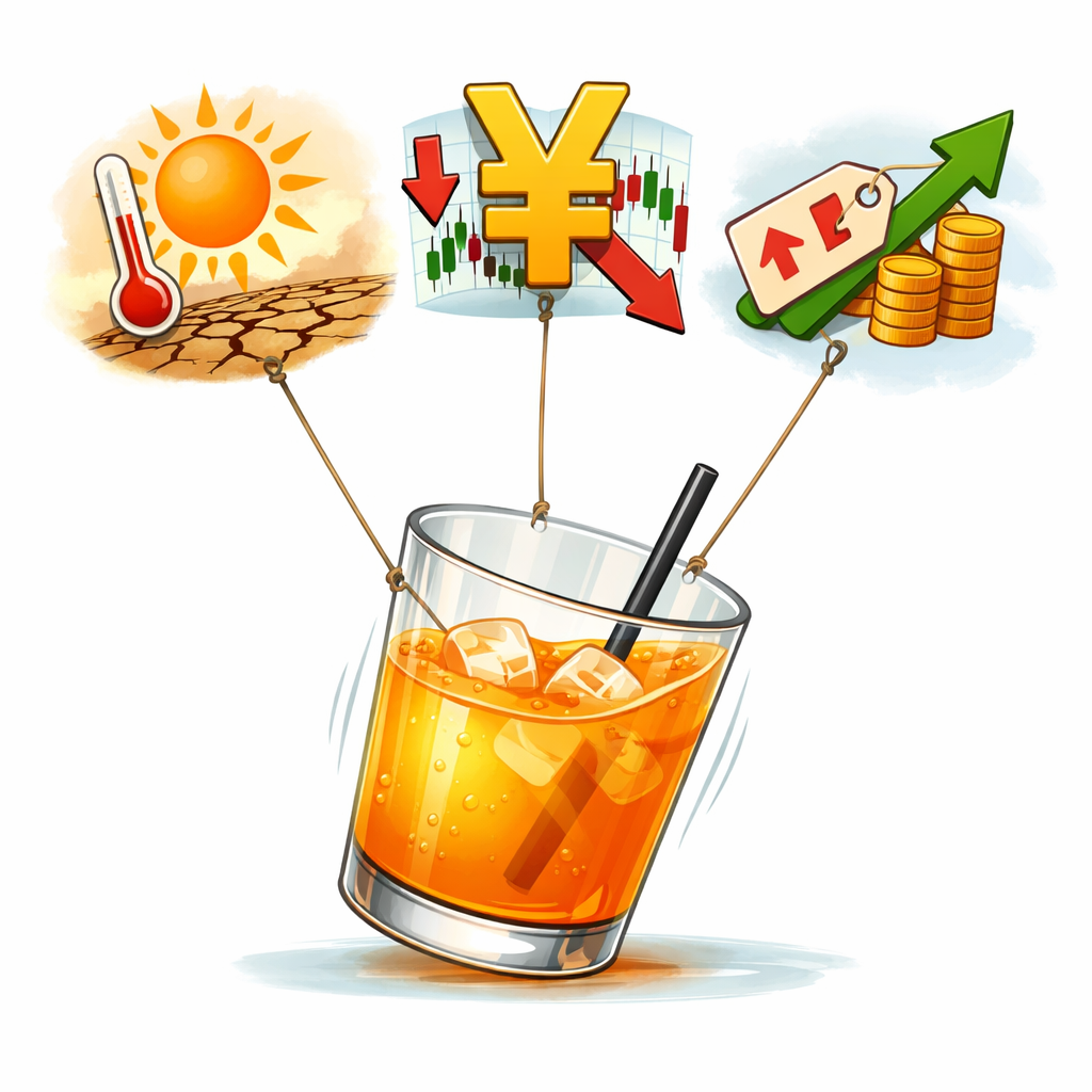 その結果、世界的に果汁の供給が不安定になりました📉