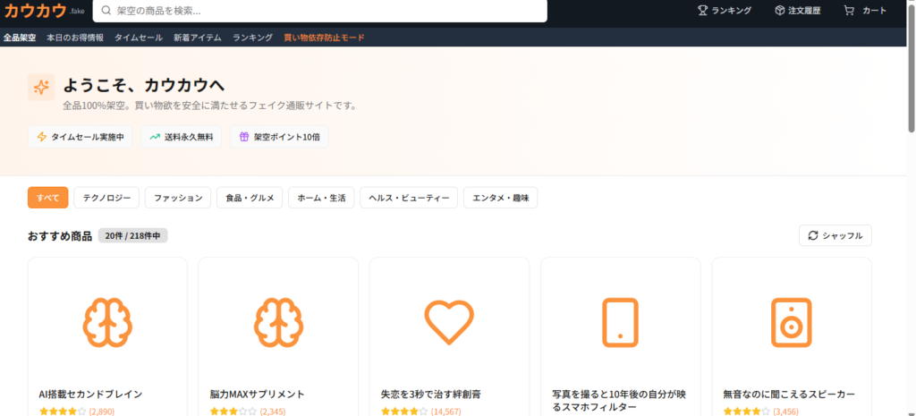 「純度100%の架空商品を取り揃えたECサイト、カウカウをオープンしました。」