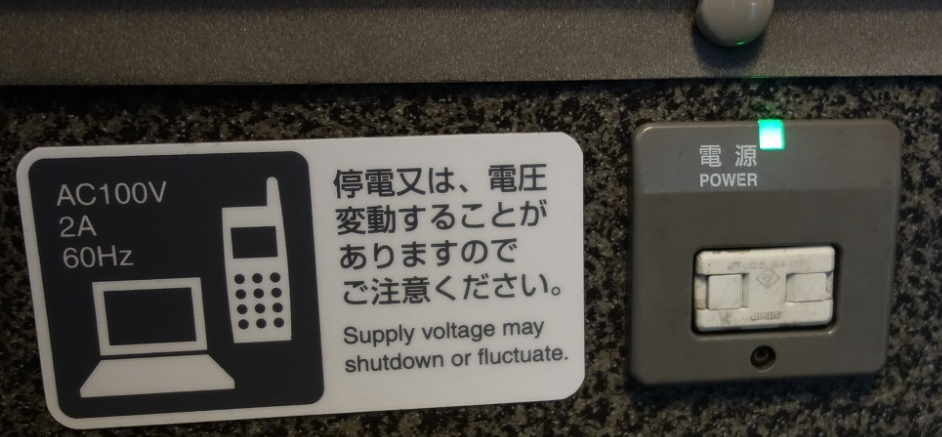 ※N700Aの車両だと、コンセントは窓側席・前後最前/最後列 のみになり、前後最前/最後列以外の通路側の席にはありません。
