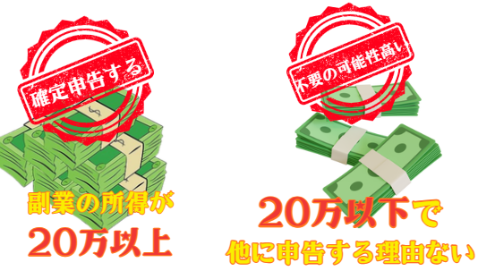 💡特に、本業の給料をもらっている人は、給料以外のもうけが20万円を超えるかどうかがひとつの目安になります。