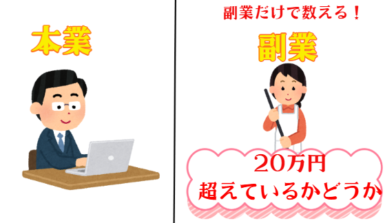 本業の給料とは別に出たもうけが20万円を超えるかどうかの目安です。