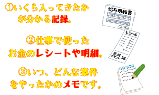 - 売上メモや帳簿(副業など)