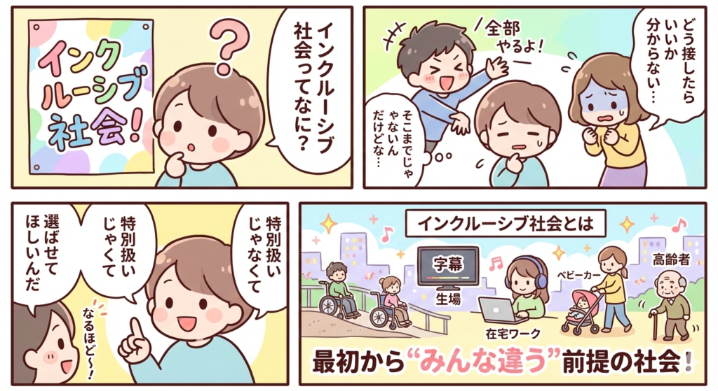 - <4コマ漫画で紹介!インクルーシブ社会って何?>